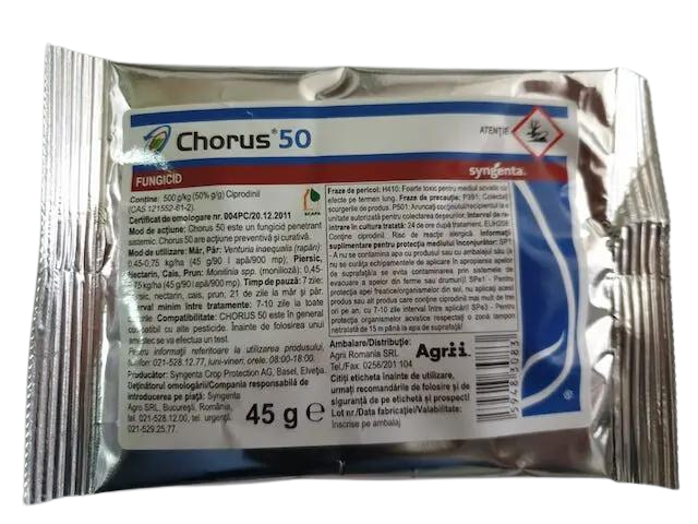 Chorus 50 WG fungicid sistemic special conceput pentru combaterea timpurie a rapanului la mar si par si moniliozei la un numar mare de culturi.